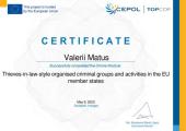 Викладач кафедри юридичних дисциплін Сумської філії Харківського національного університету внутрішніх справ Валерій Матус успішно закінчив онлайн модуль «Організовані злочинні групи по типу «злодіїв в законі» і їх діяльність в країнах ЄС», що був запроваджений Консультативною місією Європейського Союзу з реформування сектору цивільної безпеки України (КМЄС в Україні) спільно з Агентством Європейського Союзу з підготовки співробітників правоохоронних органів (CEPOL) та проєктом «TOPCOP».
