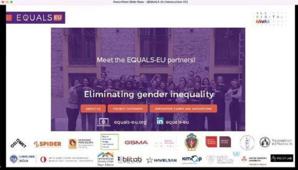 Онлайн-зустріч була організована в рамках проєкту «Європейське регіональне партнерство для гендерної рівності в епоху цифрових технологій» (EQUALS-EU) Горизонт 2020. Мета проєкту: нарощування потенціалу за допомогою багатостороннього партнерства, що зміцнює наявні та формалізує нові мережі в галузі соціальних інновацій та підприємництва; створення розумних, стійких та інклюзивних екосистем соціальних інновацій у місцевих громадах, містах Європи та в неєвропейських країнах.