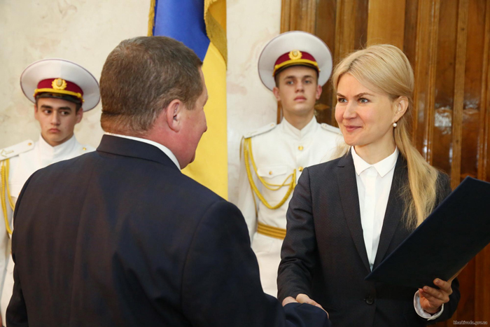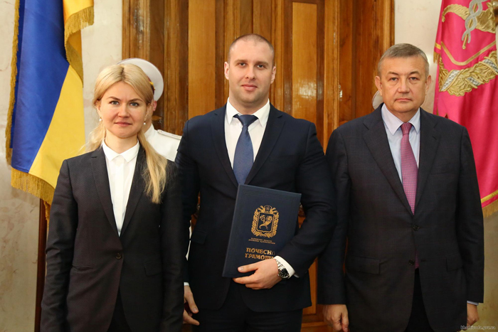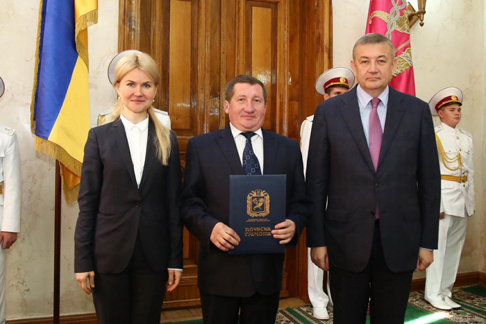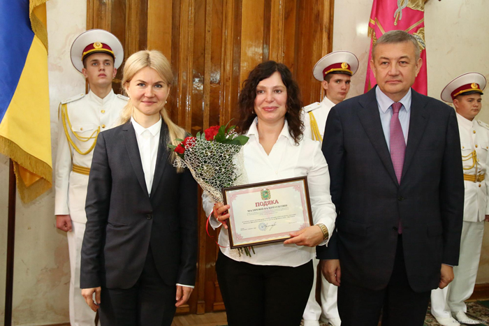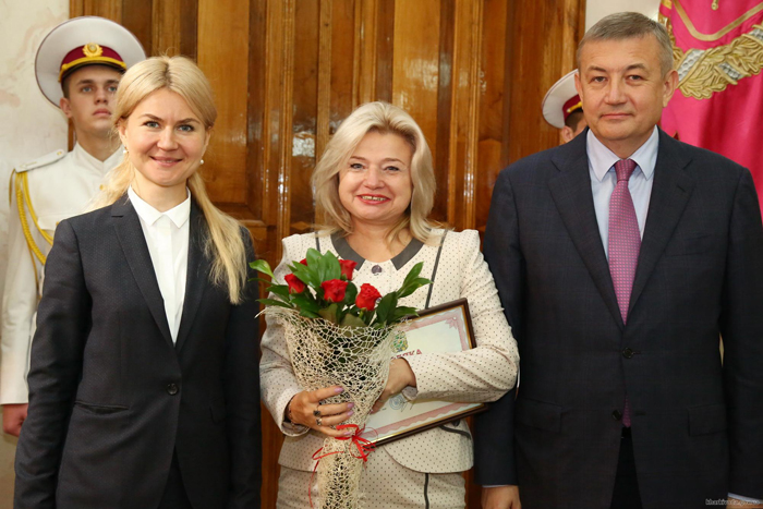 Почесні грамоти Харківської обласної ради її очільник Сергій Чернов вручив завідувачу кафедри правового забезпечення господарської діяльності факультету № 6, доктору юридичних наук, професору Ользі Гетьманець та професору кафедри криміналістики та судової експертології факультету № 1, доктору юридичних наук, доценту Валерії Маляровій.