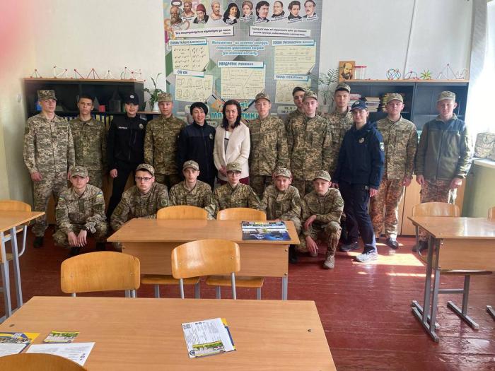 Завідувачка кафедри конституційного і міжнародного права факультету № 4 Харківського національного університету внутрішніх справ Тетяна Гудзь, доцентка кафедри соціальних та економічних дисциплін факультету № 2 Оксана Мельничук, провідна фахівчиня факультету № 1 Лілія Жиронкіна та курсантки університету відвідали Буковинський ліцей-інтернат з посиленою військово-фізичною підготовкою та зустрілися з учнями 10-11 класів. Зустріч відбулася за сприянням начальника відділу гуманітарної політики Новодністровської міської ради Дністровського району Чернівецької області Людмили Пастушок та в.о. директора ліцею Ірини Анастіної.