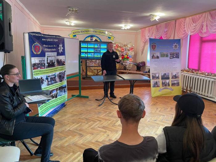 Представники університету ознайомили присутніх із цьогорічними умовами вступу, як на факультети за державним замовленням, так і за кошти юридичних і фізичних осіб на факультет № 6, а також перспективами майбутнього працевлаштування. Абітурієнтам довели покроковий алгоритм дій при вступі до закладу вищої освіти. Курсанти поспілкувалися зі старшокласниками, розповіли їм про свої враження від навчання, поділилися досвідом вступу до вишу. З директором школи Анатолієм Козорізом було окреслено перспективи майбутньої співпраці та підписано договір.