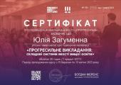 Після закінчення навчального курсу та успішного складання тестових завдань Юлія Загуменна отримала сертифікат про підвищення кваліфікації міжнародного зразка.
