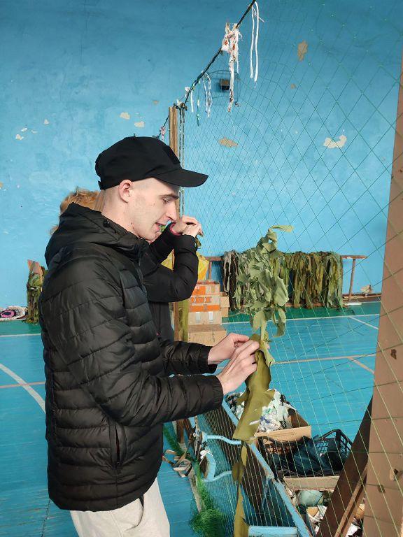 Курсанти 2 курсу Сумської філії Харківського національного університету внутрішніх справ активні учасники волонтерської діяльності й допомагають майстриням волонтерського центру «Дзеркало добра» нарізати стрічки та плести маскувальні сітки, для захисників нашої країни.