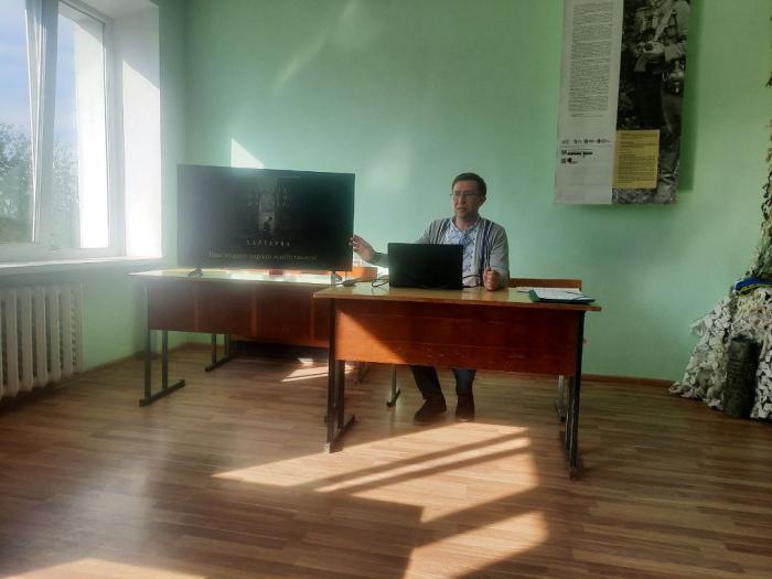 Фахівець відділення дозвілля Андрій Прохоров за допомогою слайд-шоу нагадав присутнім про причини та хід депортації кримськотатарського народу 1944 року. Була розкрита також і суть колоніальної політики країни-агресорки, яка що у радянському, що у сучасному вигляді залишається по суті незмінною відносно права корінних народів на свою етнічну територію та самовизначення. Для курсантів було зроблено й анонс перегляду вітчизняного художнього фільму «Хайтарма», який глибоко розкриває звичайний людський вимір трагічних подій депортації.