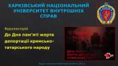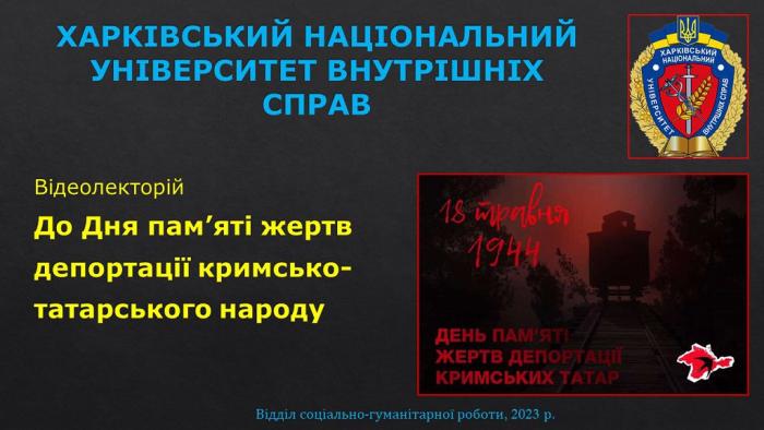 З нагоди відзначення в Україні Дня пам’яті жертв депортації кримськотатарського народу для здобувачів вищої освіти Харківського національного університету внутрішніх справ відділом соціально-гуманітарної роботи було підготовлено відеолекторій.