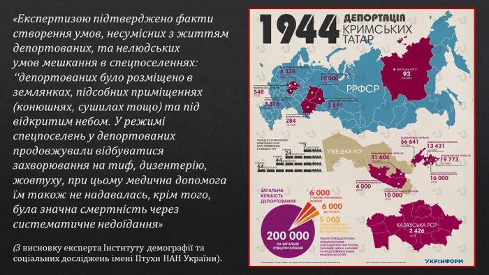 Сьогодні, коли українці різного етнічного походження злиті, як ніколи, у єдину політичну націю зі спільною метою здобути волю на власній Богом даній землі, пам’ятний день про трагічну сторінку історії кримськотатарського народу та свято на честь одного з яскравих культурних символів українського народу – вишиванки – стають тими двома невід’ємними кольорами на єдиній вишитій сорочці.
