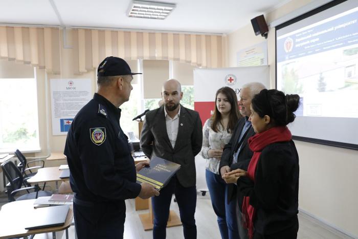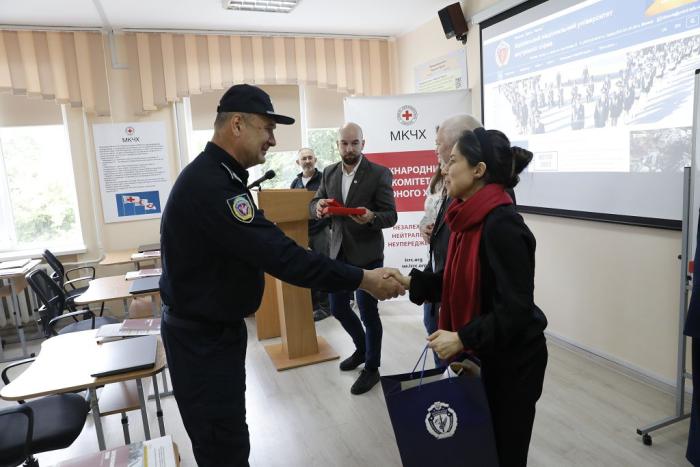 У Харківському національному університеті внутрішніх справ відбулося відкриття спеціалізованої навчальної аудиторії з міжнародного гуманітарного права. Обладнання та сертифікати передали ректору вишу Валерію Сокуренку представники Міжнародного Комітету Червоного Хреста (МКЧХ) – глава субделегації МКЧХ у Львові Лілаф Балісани; радник по роботі з правоохоронними органами та силами безпеки Дмитро Дворник; делегат з питань роботи з правоохоронними органами та силами безпеки Максим Гутов; юридичний радник Віра Ніколаєнко.