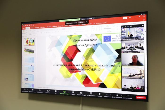 Оксана Цукан також розповіла про проєкт «Світлофор політики ЄС: гендер, права, міграція та цифровізація» (GeRiMiD) програми Еразмус+ за напрямом Жан Моне, реалізація якого на базі університету стала знаковим прогресивним кроком та мала стратегічні наслідки у вигляді комплексу можливостей для здобувачів освіти та працівників університету.