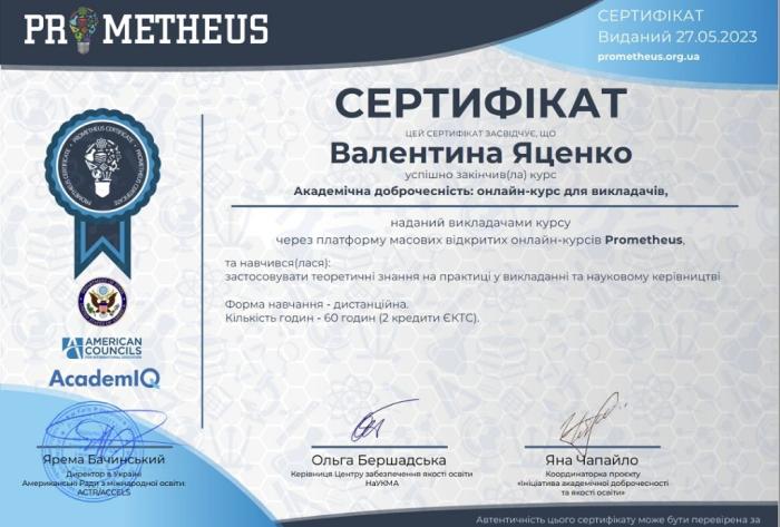Під час навчання слухачами курсу отримано теоретичні знання, навички та поради, які стануть у нагоді при плануванні та реалізації інформальної або неформальної форм освіти, а також в обранні ефективної методики викладання навчальних дисциплін з дотриманням академічної доброчесності.