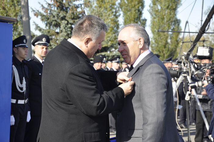 За сумлінне ставлення до виконання службових обов’язків, відданість справі охорони правопорядку, виняткову мужність, героїзм і незламність духу, виявлені при захисті міста Харкова від незаконних збройних формувань наказом МВС України вогнепальною зброєю нагороджено: