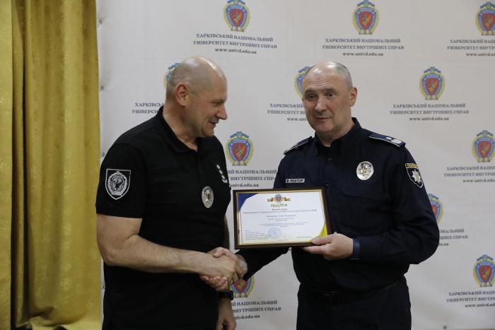 Під час засідання Вченої ради відбулося нагородження працівників університету. За заслуги перед Українським народом Грамотою Верховної Ради України, нагрудним знаком відзначено завідувача науково-дослідної лабораторії з проблем наукового забезпечення правоохоронної діяльності та якості підготовки кадрів, доктора юридичних наук, професора, підполковника поліції Костянтина Бугайчука.