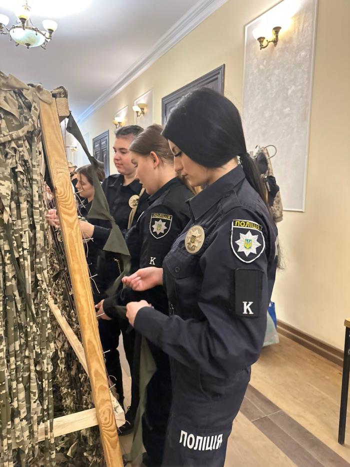 Курсанти Харківського національного університету внутрішніх справ продовжують долучатися до плетіння маскувальних сіток для потреб захисників України, які зараз звільняють від ворога наші землі. Хлопці та дівчата із задоволенням допомагають захисникам, вважають своїм обов’язком брати участь у волонтерській діяльності й робити усе можливе задля нашої перемоги. Власним прикладом курсанти ХНУВС на Хмельниччині заохочують усіх долучатися до волонтерського руху.