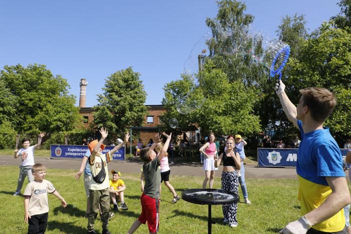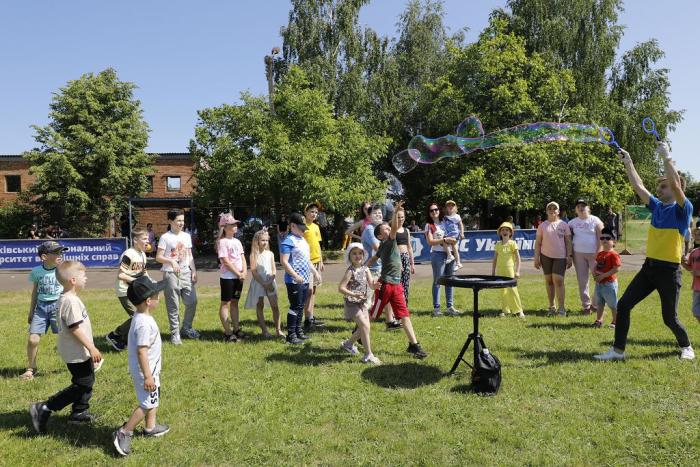 Відділ соціально-гуманітарної роботи університету організував цікаву й насичену святкову програму. Разом із аніматорами діти брали участь у різних конкурсах, руханках, цікавих вікторинах, грали у веселі та захоплюючі ігри. Вони ознайомилися з роботою кінологічної служби, поспілкувалися з пухнастими чотирилапими підопічними поліцейських, оглянули різні види зброї, позмагалися у стрільбі, уявили себе водіями поліцейських машин та багато іншого. Гарний настрій дітям забезпечила не лише святкова атмосфера, але й отримані від профспілкового комітету університету солодощі та подарунки – морозиво, сувеніри, альбоми для малювання, олівці та фарби.