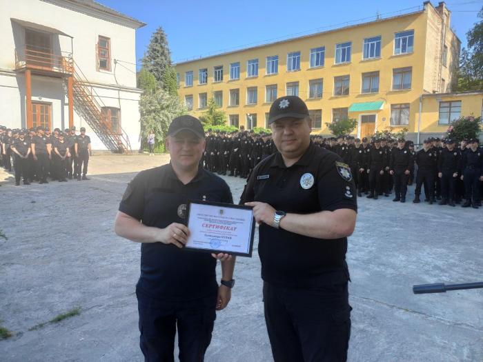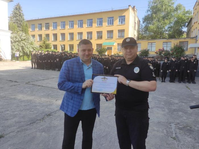 Під час ранкового шикування особового складу факультету № 1 Харківського національного університету внутрішніх справ декан факультету Віталій Романюк вручив курсантам і викладачам дипломи, сертифікати та подяки за активну участь у науково-дослідній діяльності університету. Їх отримали:
