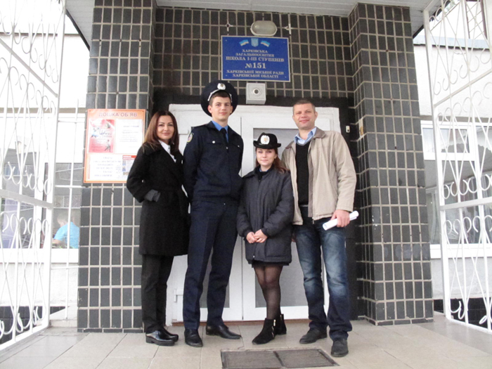 Викладачі кафедри соціології та психології факультету № 6 Харківського національного університету внутрішніх справ Наталя Алексєєнко та Володимир Філоненко, курсанти 3-го курсу факультету № 1 Ольга Коваленко та Андрій Філоненко в рамках профорієнтаційної роботи провели зустріч з учнями 10–11 класів Харківської загальноосвітньої школи № 151.