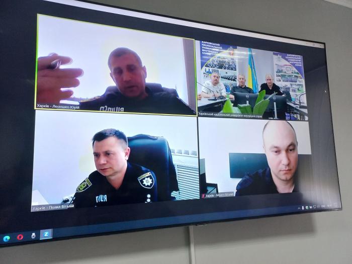 Відбулася чергова робоча онлайн-зустріч представників ГУНП в Харківській області – начальника Управління кримінального аналізу Юрія Лемешка та начальника відділу оперативних обліків Віталія Похила зі здобувачами вищої освіти ХНУВС – курсантами 1-2 курсів факультету № 2 та слухачами магістратури факультету № 3. У зустрічі також взяли участь члени наукового гуртка кафедри оперативно-розшукової діяльності та розкриття злочинів (за напрямом – основи кримінального аналізу), декан факультету № 2 Ігор Назаренко, його заступник Сергій Гіренко, т.в.о. начальника кафедри Сергій Козаченко та професор кафедри Андрій Ханькевич.