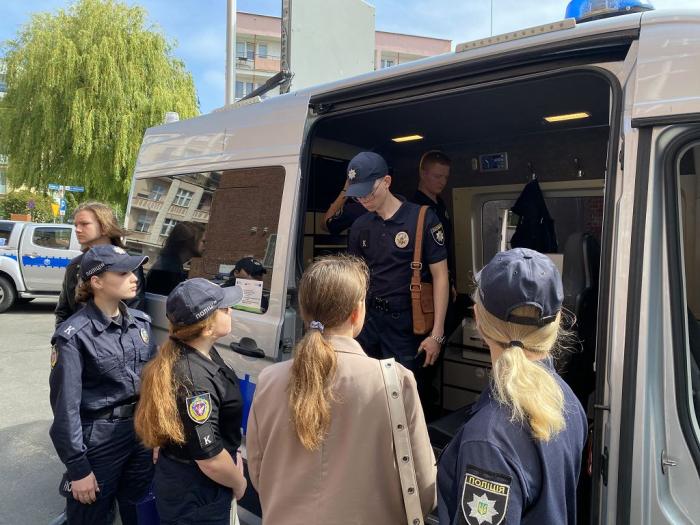 Учасники «Літньої школи» Університету імені Адама Міцкевича в Познані поспілкувалися з поліцейською командою міста Колобжег та ознайомилися зі специфікою та особливостями роботи польських колег, оглянули спеціальні технічні засоби та автомобільну техніку дорожньої поліції, побачили роботу слідчих та криміналістів.