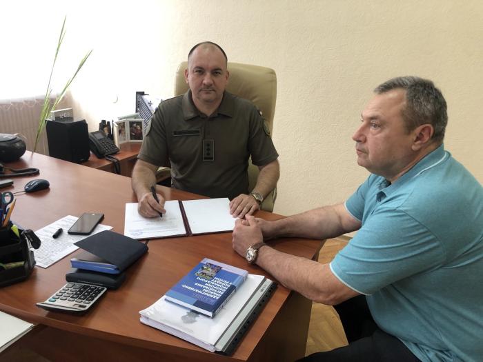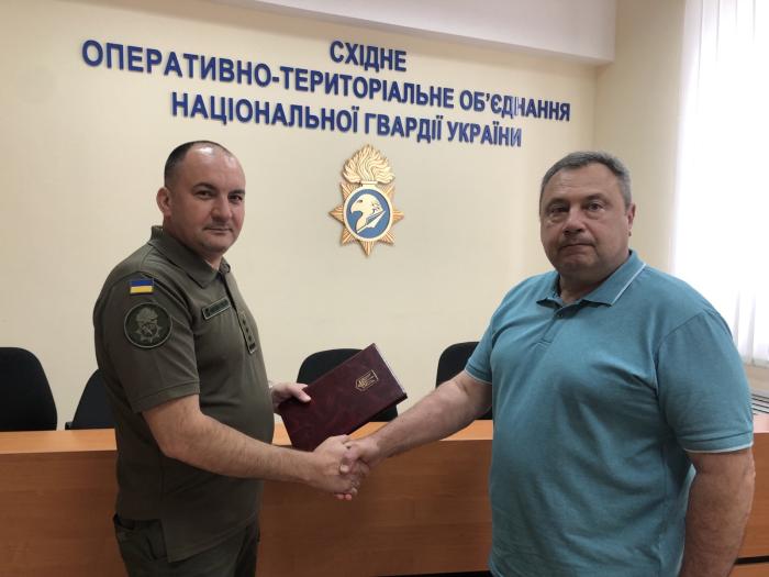 Доцент кафедри правоохоронної діяльності та поліціїстики факультету № 6 кандидат юридичних наук, доцент Микола Голуб провів робочу зустріч із заступником начальника зі служби Східного оперативно-територіального об’єднання Національної гвардії України Русланом Счастним.