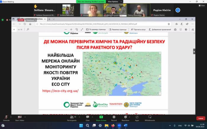 На заході було порушено такі питання: моніторинг повітря та радіаційного фону як частина системи попередження; безкоштовні засоби моніторингу повітря та радіації; методи попередження населення про забруднення повітря та радіологічну небезпеку; хімічні загрози від ворожих обстрілів.