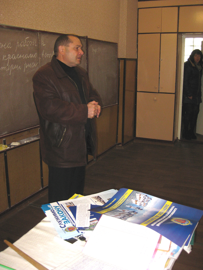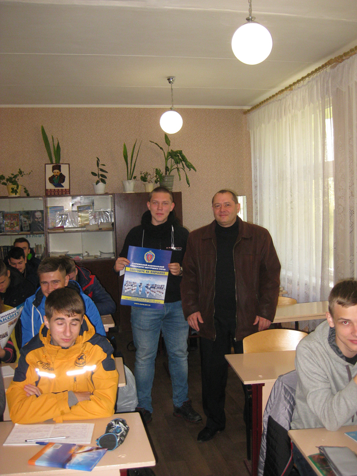 Завідувач підготовчого відділення Харківського національного університету внутрішніх справ Євгеній Руднєв зустрівся з учнями 11-х класів шести загальноосвітніх навчальних закладів м. Первомайського Харківської області та учнями випускного курсу Первомайського професійного ліцею.