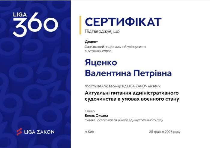 Доцентки кафедри адміністративного права та процесу факультету № 1 Ірина Казанчук і Валентина Яценко з метою підвищення рівня професійної майстерності взяли участь у навчальному вебінарі від LIGA ZAKON на тему «Актуальні питання адміністративного судочинства в умовах воєнного стану», організованого за підтримки Міністерства освіти та науки України.