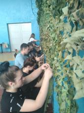Курсанти-волонтери 2 курсу Сумської філії Харківського національного університету внутрішніх справ постійно беруть участь у плетінні маскувальних сіток у волонтерському центрі «Моторний вулик». Молодь навчилася різним технікам плетіння і творчо ставиться до виконання завдання. Керівниця волонтерського центру Олена Черненко стверджує, що маскувальних сіток багато не буває. Маскувальна сітка – це якісний захист техніки, зброї та життя воїнів. Така допомога й підтримка ЗСУ від тилу – обов’язкова складова перемоги України над російським агресором.