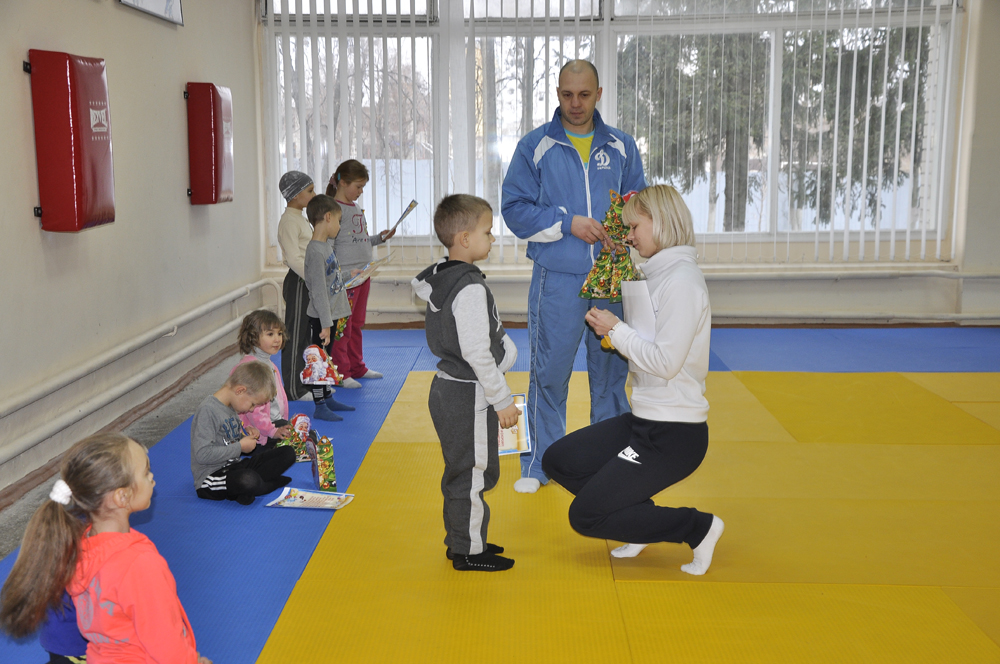 Напередодні новорічних свят відбулося заняття секції із самбо та дзюдо для дітей працівників Харківського національного університету внутрішніх справ. У секції займаються діти віком до одинадцяти років, яких тренери навчають основам спортивної майстерності. Хлопчики і дівчатка із задоволенням виконують різні вправи і фізично загартовуються.