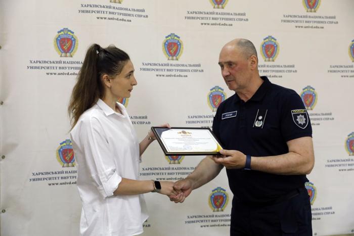 Подяками Вченої ради Харківського національного університету внутрішніх справ за сумлінну працю, високий професіоналізм, відповідальне ставлення до виконання службових обов’язків та з нагоди відзначення Дня Конституції України нагороджені: заступник декана факультету № 6 Костянтин Свердлін; завідувач відділення комп’ютерних мереж та експлуатації комп’ютерів Роман Фіновський; фахівчиня відділення режиму та секретного діловодства відділу режимно-секретного забезпечення Надія Мирошник; фахівець відділення дозвілля відділу соціально-гуманітарної роботи Андрій Прохоров; фахівчиня відділу організаційно-аналітичної роботи та контролю Тетяна Тригуб; завідувачка виробництва їдальні № 1 Надія Волоська; комірниця відділення продовольчого забезпечення відділу матеріального забезпечення Галина Куліцька; фахівчиня факультету № 3 Катерина Байцур.