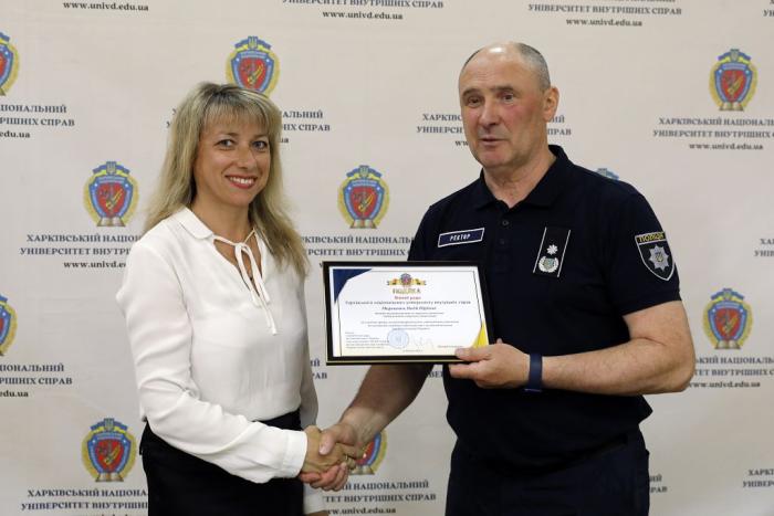 Під час чергового засідання Вченої ради відбулося нагородження працівників університету. Вручено було дипломи за участь у Всеукраїнському конкурсі на краще правниче видання. Диплом І ступеня у номінації «Періодичні видання», який отримав науковий журнал ХНУВС «Право і безпека», ректору університету, головному редактору видання Валерію Сокуренку вручив перший віцепрезидент Національної академії правових наук України Олександр Бандурка.