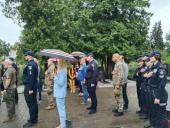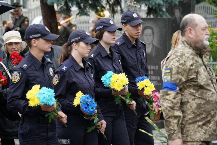З нагоди відзначення 27-ї річниці Конституції України курсанти другого курсу Сумської філії Харківського національного університету внутрішніх справ разом із керівниками міста, області, громадськістю та військовими поклали квіти до пам’ятного знаку загиблим захисникам України.