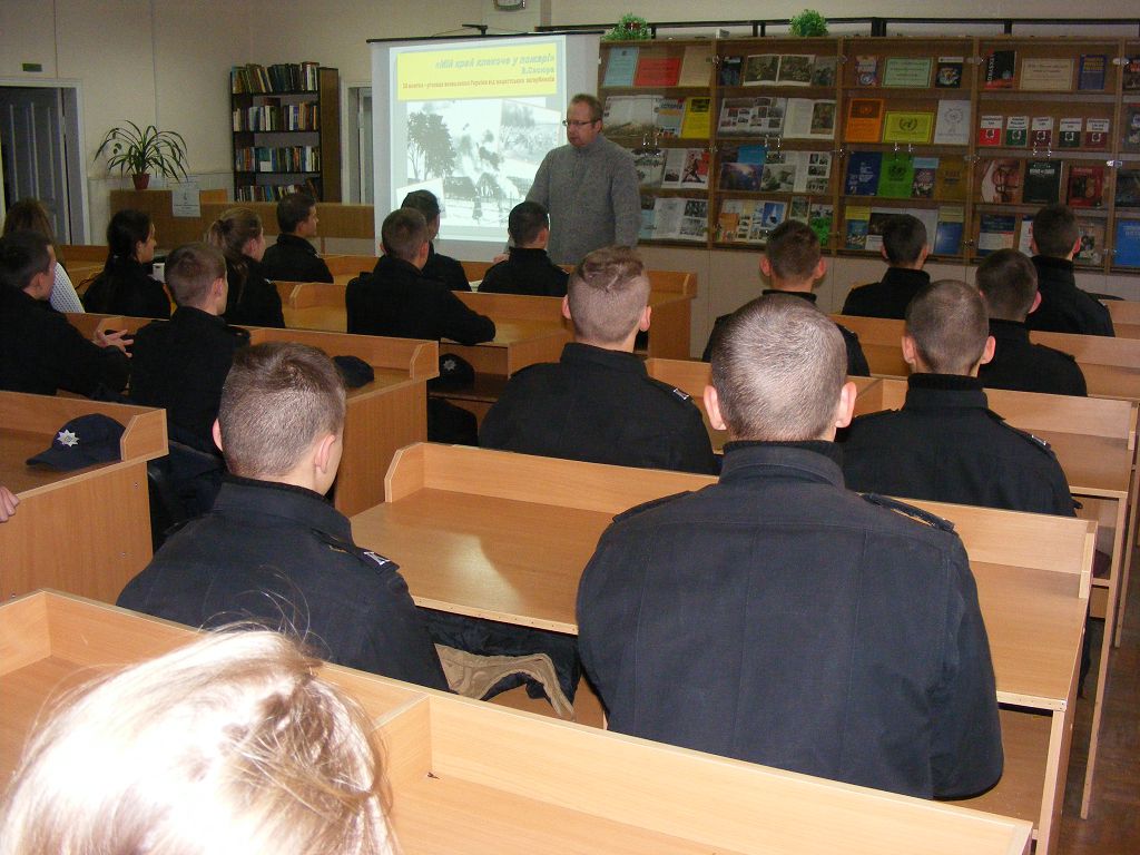 Лекцію для курсантів прочитали працівники університетської та Харківської обласної бібліотек. Також юнаки і дівчата переглянули відеофрагменти та познайомились з розгорнутою книжково-ілюстрованою експозицією «Дорогами визволення України».