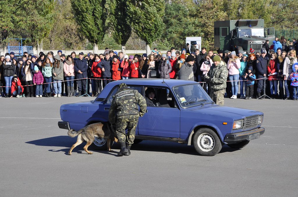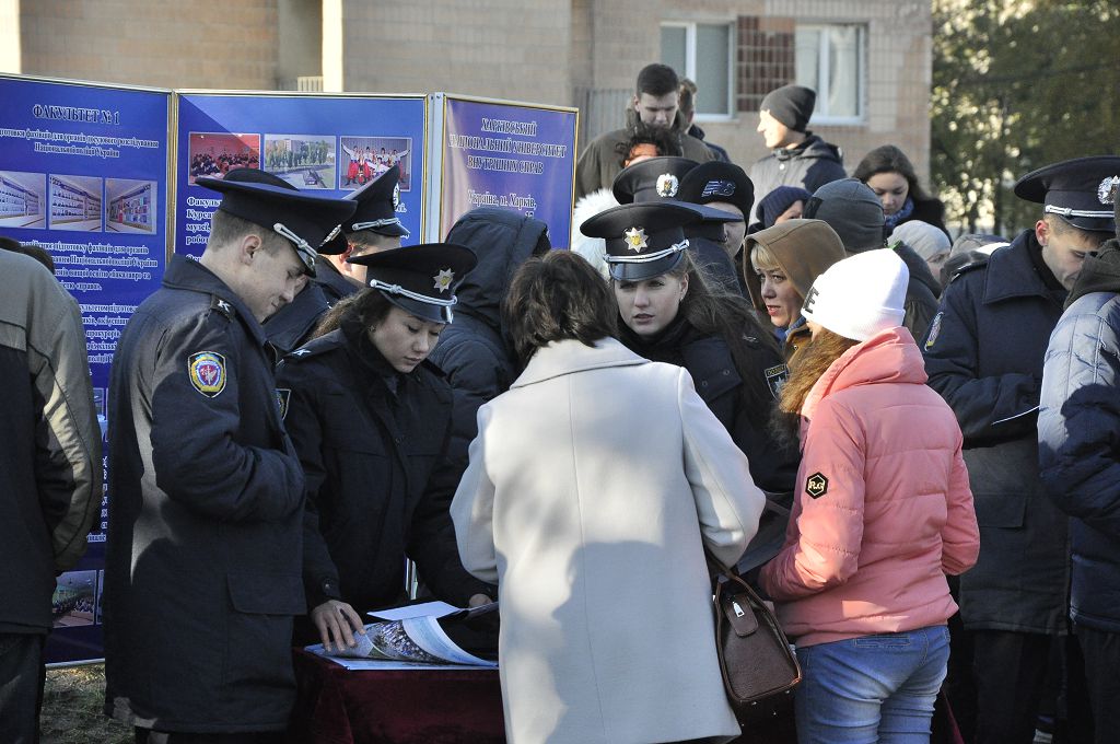 Майбутні абітурієнти оглянули виставку вогнепальної зброї та навчальні місця, на яких відпрацьовуються дії поліцейських: із затримання підозрілих осіб під час перевірки документів на блокпосту, перевірки документів, проведення поверхневої перевірки та огляду особистих речей, доставляння правопорушника пішим порядком та службовим автотранспортом, під час виявлення порушень Правил дорожнього руху, у разі зупинення транспортного засобу на підставі інформації, що свідчить про причетність водія до вчинення кримінального правопорушення, під час виклику на сімейну сварку тощо.