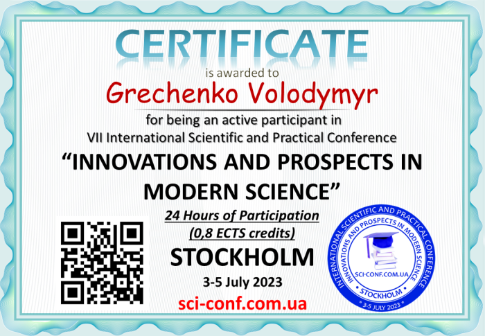 Викладачі факультету № 6 ХНУВС продовжують брати участь у міжнародних науково-практичних конференціях. Так, деканеса факультету докторка юридичних наук, доцентка Оксана Брусакова та завідувач кафедри соціально-гуманітарних дисциплін доктор історичних наук, професор, заслужений працівник освіти України Володимир Греченко взяли участь онлайн у VII Міжнародній науково-практичній конференції «Innovations and prospects in modern science» («Інновації та перспективи сучасної науки»), що відбулася в м. Стокгольм, Швеція. Вчені представили тези доповіді «Делінквентна поведінка працівників поліції в Україні та її превенція». У ній автори визначили спеціальні ознаки цієї злочинності, її структуру, мотиви скоєння співробітниками поліції злочинів. Дослідники відзначили, що попередження злочинності цього виду повинно включати в себе загальносоціальний, регіональний, груповий та індивідуальний рівні. У конференції взяли участь науковці з різних країн Європи, зокрема й України.