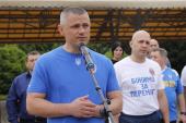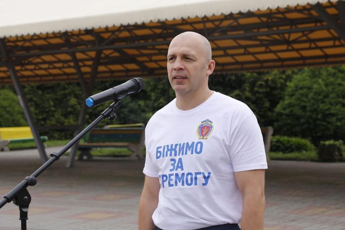 До учасників забігу звернулись проректор університету Анатолій Клочко та завідувач кафедри тактичної та спеціальної фізичної підготовки факультету № 3 Ігор Ковальов.