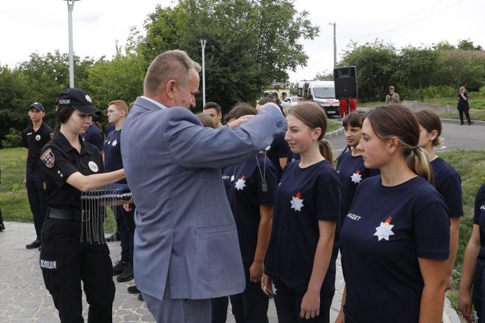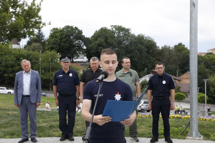 Хлопці та дівчата промовили слова Клятви кадета «Кадетського корпусу поліції» та отримали іменні жетони.