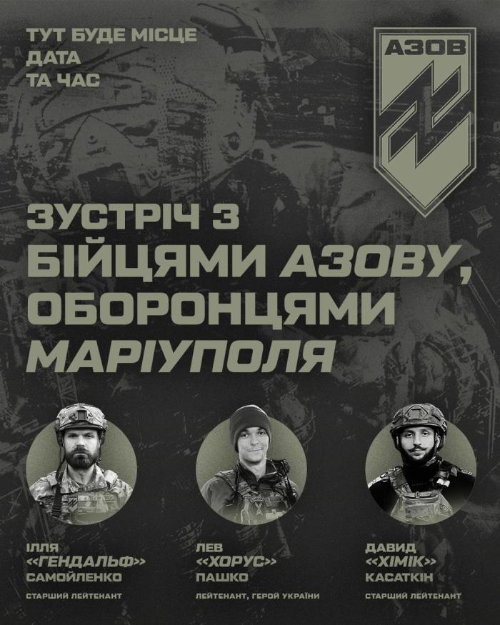 17 липня 2023 року о 13.00 за ініціативи декана факультету № 6 ХНУВС Оксани Брусакової відбудеться онлайн-зустріч зі справжніми героями України, захисниками Маріуполя з полку «Азов» – Давидом Касаткіним, Левом Пашко, Іллею Самойленко. До зустрічі запрошуємо студентів, курсантів і науково-педагогічний склад університету.