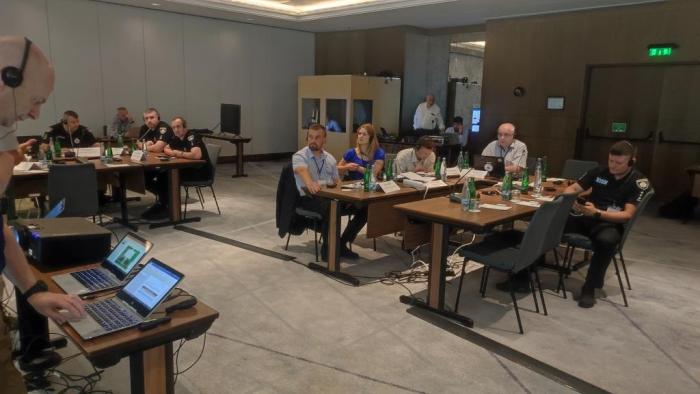 Зустріч проходила у два етапи. Під час першого – українська делегація відпрацювала практичну складову навчального курсу. Модераторами виступили фахівці з фізичного захисту Управління радіологічної безпеки Національної адміністрації з ядерної безпеки Міністерства енергетики Сполучених Штатів Америки Джеремі Джемісона (Jeremy Jamison), Соріна Пуброші (Sorin Pubroschi) і Джері Андерсона (Jerry Anderson). Під час другого етапу представники закладів вищої освіти Міністерства внутрішніх справ України – розробники навчального курсу «Реагування поліції на неправомірні дії, пов’язані з джерелами іонізуючого випромінювання під час їх використання, зберігання або транспортування», зокрема Сергій Марчишин і Тетяна Матюшкова, – представили решті української делегації у повному обсязі розроблений ними курс і провели повноцінні навчальні заняття.