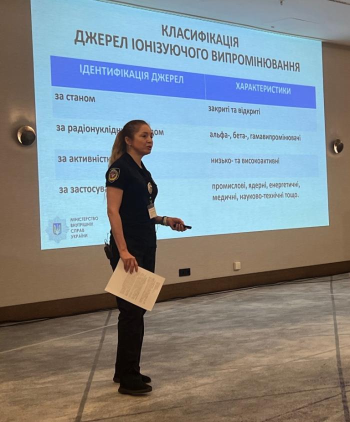Захід проводився у межах реалізації проєкту міжнародної технічної допомоги «Покращення стану захищеності та реагування стосовно джерел іонізуючого випромінювання в Україні» та пов’язаний із забезпеченням імплементації розробленого навчального курсу «Реагування поліції на неправомірні дії, пов’язані з джерелами іонізуючого випромінювання під час їх використання, зберігання або транспортування» в освітню програму та освітній процес МВС для підготовки фахівців Національної поліції України, які здійснюють заходи реагування та охорони джерел іонізуючого випромінювання в Україні.