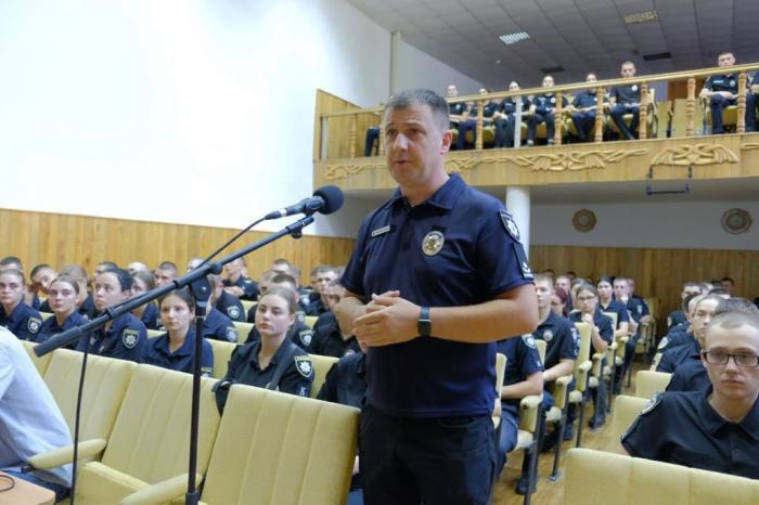 Військові розповіли про свій життєвий шлях, бойовий досвід виконання службових завдань на сході держави. Олександр Боровий зазначив, що він брав участь в обороні та звільненні Харківщини. Віктор Цебрик поділився спогадами про своє перебування в полоні та наголосив, що зробить усе, заради перемоги України над ворогом. Бійці зазначили, що поки вони боронять незалежність України, курсанти мають сумлінно навчатися та набувати практичних навичок, робити посильний внесок задля майбутньої перемоги: виготовляти маскувальні сітки, надавати донорську допомогу, брати участь у волонтерському русі.