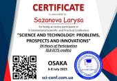 Старша викладачка кафедри іноземних мов факультету № 4 Лариса Сазанова взяла участь у Х Міжнародній науково-практичній онлайн-конференції «Science and Technology: Problems, Prospects and Innovations» (Osaka, Japan) та представила статтю «Practices of second language grammar teaching in higher educational establishments». За результатами заходу викладачка отримала сертифікат учасника та збірник матеріалів конференції.