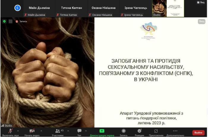 «СНПК – кваліфікується, як злочин проти людяності він не має строку давнини й отримати покарання мають як виконавці, так і військові командири», - зазначила Урядова уповноважена з питань гендерної політики Катерина Левченко. Вона також прокоментувала рамкову програму між Урядом України та ООН. Запланована проєктна робота допоможе вирішити питання, пов’язані зі змінами у законодавстві, розробкою нормативно-правової бази, адвокацією з її впровадження, стягненням репарацій, підвищенням кваліфікації фахівців, які працюють за цими напрямами, та вдосконаленням інформаційної кампанії серед населення.
