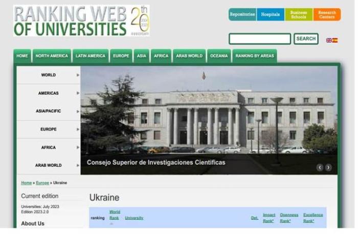 Національною дослідницькою радою Іспанії опубліковано чергову редакцію міжнародного рейтингу університетів світу «Ranking Web of Universities Webometrics». Він оцінює представленість університетів у веб-просторі через вебометричні та бібліометричні показники.