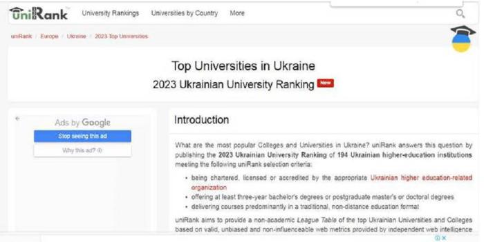 Опубліковано нове видання рейтингу університетів UniRank 2023.