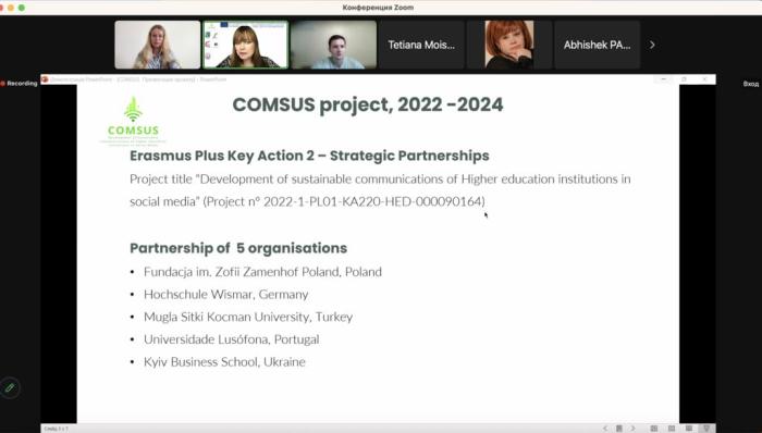 Вебінар організований Київською бізнес-школою в межах міжнародного проєкту «COMSUS. Development of sustainable communications of Higher education institutions in social media» Erasmus +.