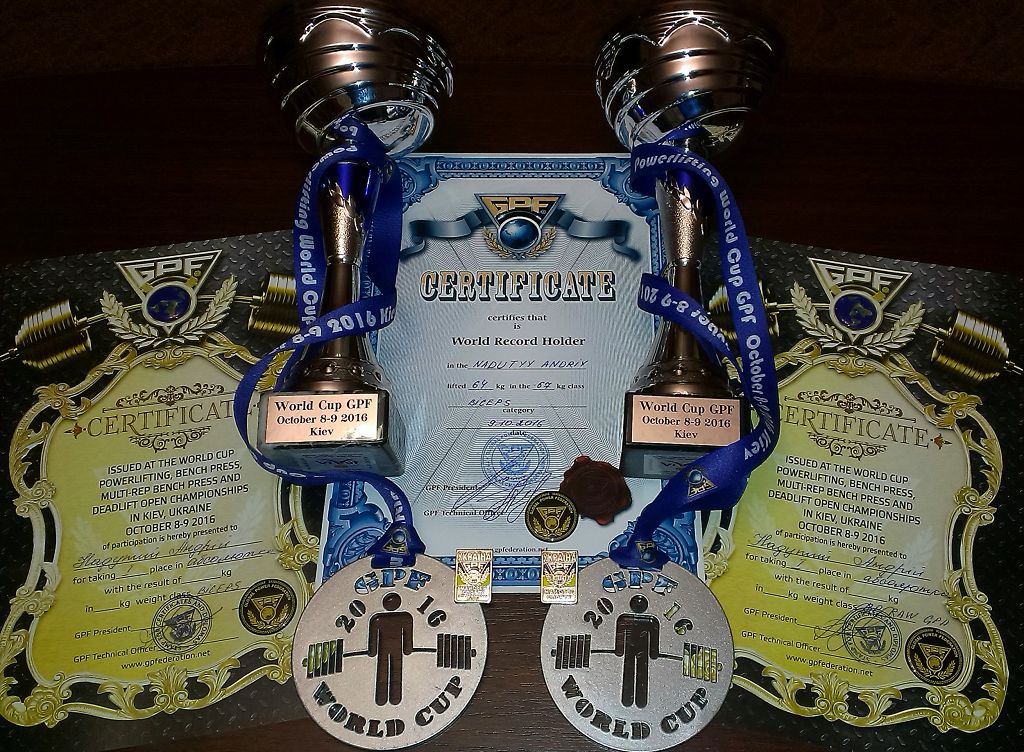 Андрій Надутий посів І місця в особистій першості, виступивши у двох дисциплінах – «жим лежачі» та «строгий підйом на біцепс», у ваговій категорії 67,5 кг. Також він став абсолютним переможцем, посівши І місце у двох зазначених дисциплінах, що визначаються за формулою Шварца/Маллона серед чоловіків усіх вагових категорій за набраними коефіцієнтами балів, відносно піднятої ваги з власною, вижав при цьому в жимі лежачі штангу вагою 130 кг, що є нормативом майстра спорту. Також Андрій, піднявши у строгому підйомі на біцепс 64 кг, підтвердив звання майстра спорту міжнародного класу та встановив новий світовий рекорд у своїй ваговій категорії до 67,5 кг. Слід відмітити, що маючи вагу 62,5 кг Андрій під час тренувань підіймав вагу у 150 кг, що є дуже високим показником у категорії до 67 кг.