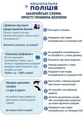 При цьому кмітливість шахраїв виходить за рамки вже добре знайомих українцям афер, тож з’являються нові способи ошукування. Департамент кіберполіції Національної поліції України розповідає про найпоширеніші схеми шахрайств та основні правила безпеки, які допоможуть викрити аферистів.