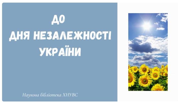 Наукова бібліотека до Дня Незалежності України підготувала віртуальну виставку і пропонує для читання 20 найпопулярніших видань електронної бібліотеки ХНУВС, присвячених історії нашої країни, розвитку державності, української ідентичності, подіям глобальних конфліктів, які відбувалися на території України тощо.