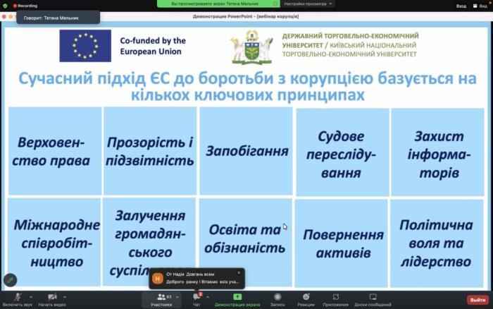 Вебінар проходив за Проєктом EU AntiCor, що фінансується ЄС за напрямом Ж. Моне в межах програми ЄС Єразмус +.
