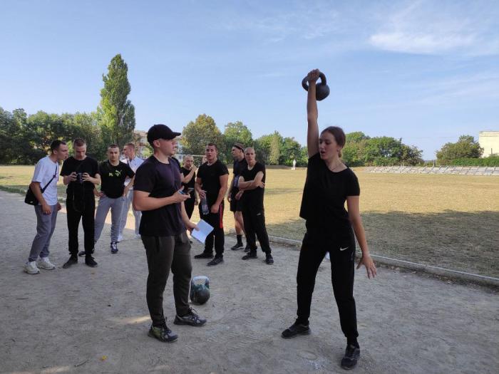 Представники кафедри тактичної та спеціальної фізичної підготовки факультету № 3 – т.в.о. завідувача кафедри Микола Боровик та головний суддя змагань, старший викладач кафедри Дмитро Константинов оголосили порядок проведення змагань і провели інструктаж для збірних команд.