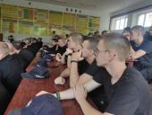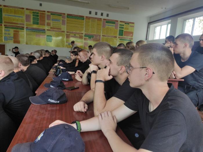 У межах табірного збору відбулася зустріч першокурсників факультетів № 1 та № 4 ХНУВС із доцентом кафедри педагогіки та психології, кандидатом психологічних наук, доцентом Павлом Макаренком. Цього разу обговорили важливу для майбутніх правоохоронців тему «Професійно-етичні вимоги щодо правил поведінки поліцейських».